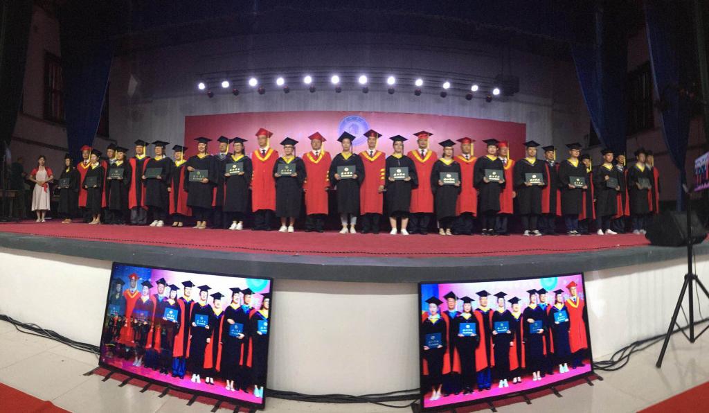 典礼仪式在雄壮的国歌声中拉开序幕,现场播放了“不忘初心 梦想起航”的微视频,共同回忆了2018届同学入校四年的青葱岁月。仪式上,表彰了2018届校级优秀毕业生;主席台领导和老师为毕业生同学授予学位、颁发学位证书、与毕业生合影留念;2018年度“毕业生心目中的好老师,接受了毕业生代表鲜花;毕业生代表、家长代表、在校生代表、教师代表依次发言,表达了深深的祝福和殷切期望。