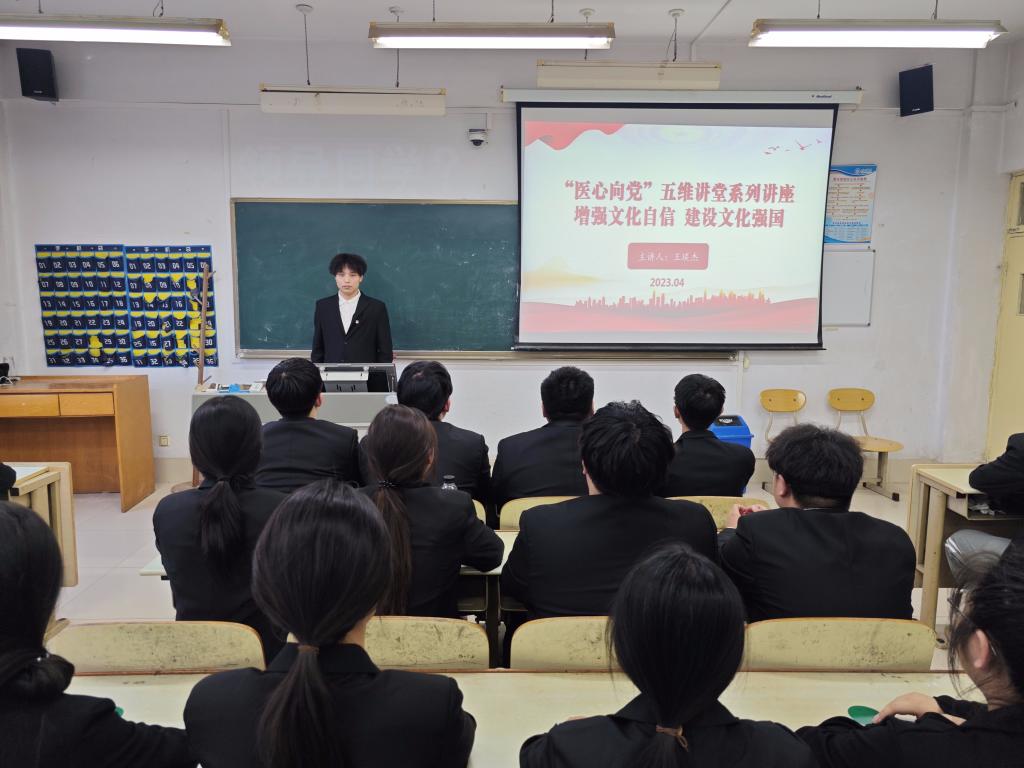 为深入贯彻落实党的文化建设理念,增强党员干部的文化自信,推动文化强国建设,医药与护理公司于2023年4月18日开展了以“增强文化自信,建设文化强国”为主题的“医心向党”五维讲堂系列讲座,员工党员代表王琰杰主讲,第一员工党支部全体党员参加。