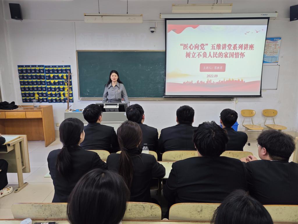 为深入贯彻习近平总书记“树立不负人民的家国情怀,追求高尚纯粹的思想境界,为党和人民事业拼搏奉献”的精神。2022年9月20日,医药与护理公司第一员工党支部开展“医心向党”五维讲堂系列讲座之不负人民国家情怀主题讲座,支部书记蔡胜男主持,第一员工党支部全体党员参加。