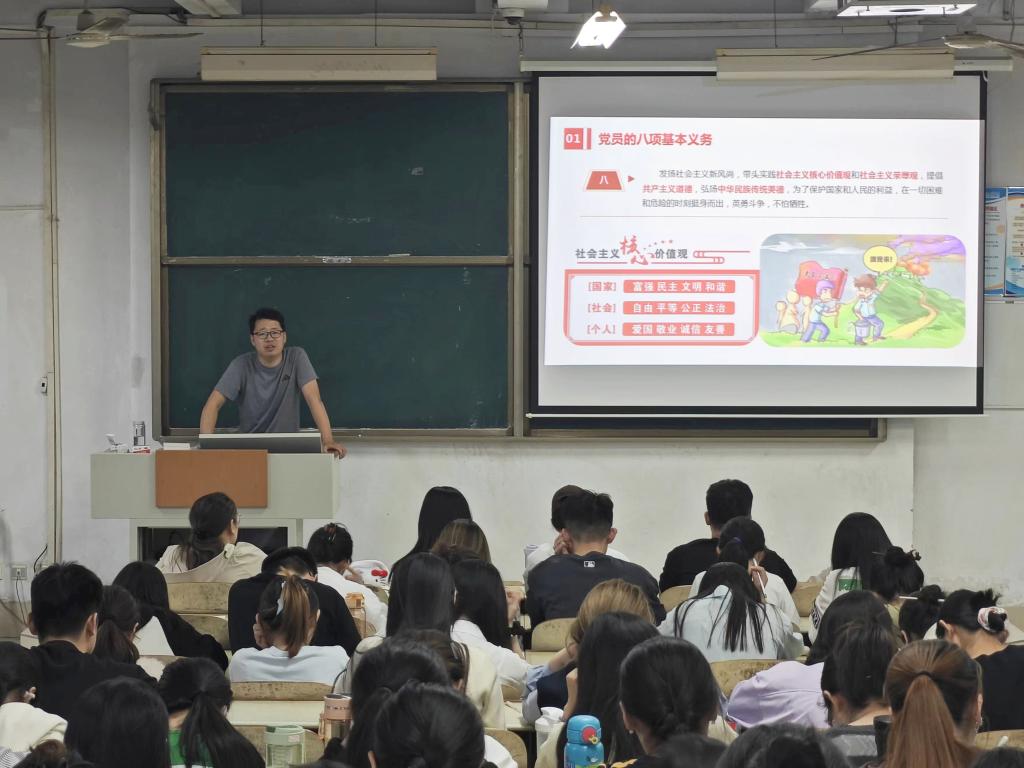 4月18日晚,医药与护理公司第36期入党积极分子培训班在体育楼414持续开讲,医药与护理公司第一教师党支部书记张中玉以“义务与权利 心中要牢记”为主题,为入党积极分子上了一堂生动的党课。