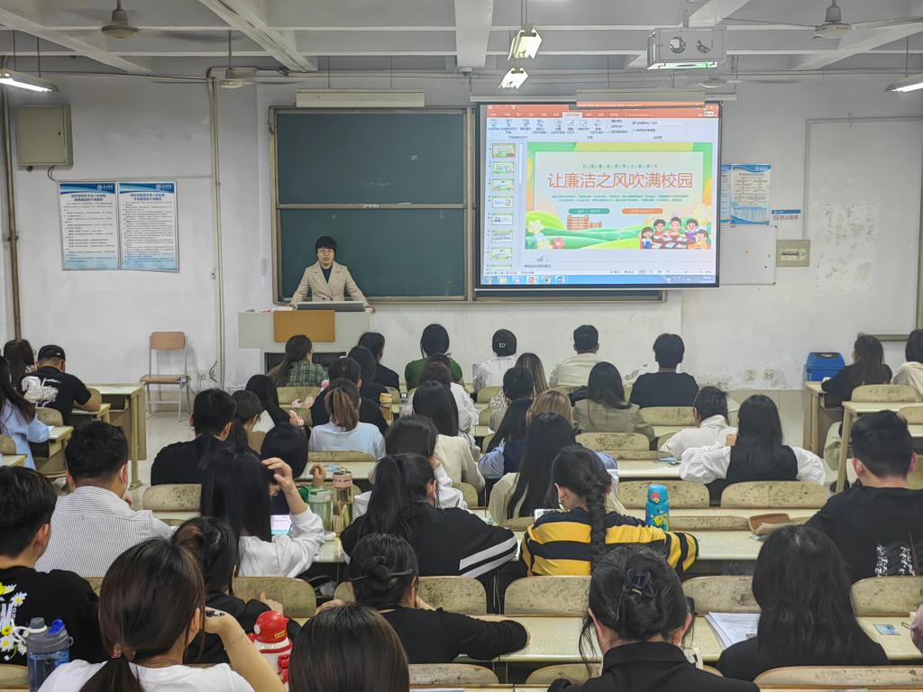 首先,滕老师详细讲解了廉洁自律的内涵及要求,阐述了廉政文化的基本理念和核心价值观,引导青年们树立正确的价值观和道德观。同时结合当前社会热点和典型案例,对腐败现象进行了深刻剖析,强调了廉洁自律对于青年一代成长的重要性。最后,滕老师鼓励青年们能够将所学所得转化为实际行动,以学养德,树立清风正气;以廉为荣,传颂廉洁之美。