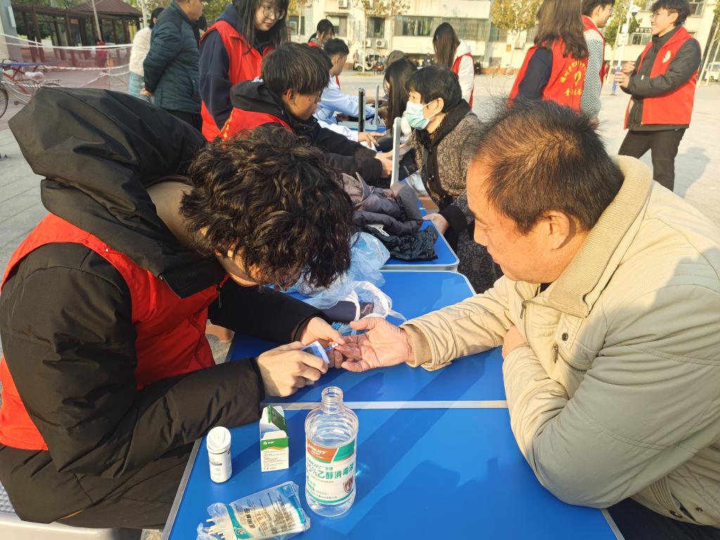 志愿者们为居民量血压、测血糖,宣传口腔保健知识。活动中,小青马通过图文并茂的PPT展示为社区居民讲述了口腔保健用品和牙齿敏感等常见问题,并在社区广场设立健康义诊服务点,他们为居民测量血压、血糖,讲解冬季保健常识。社区居民为志愿者们的到来表示欢迎和赞赏,让“青马”公司和志愿者们在社会实践中了解基层、服务基层,为基层社区的发展贡献青春力量。