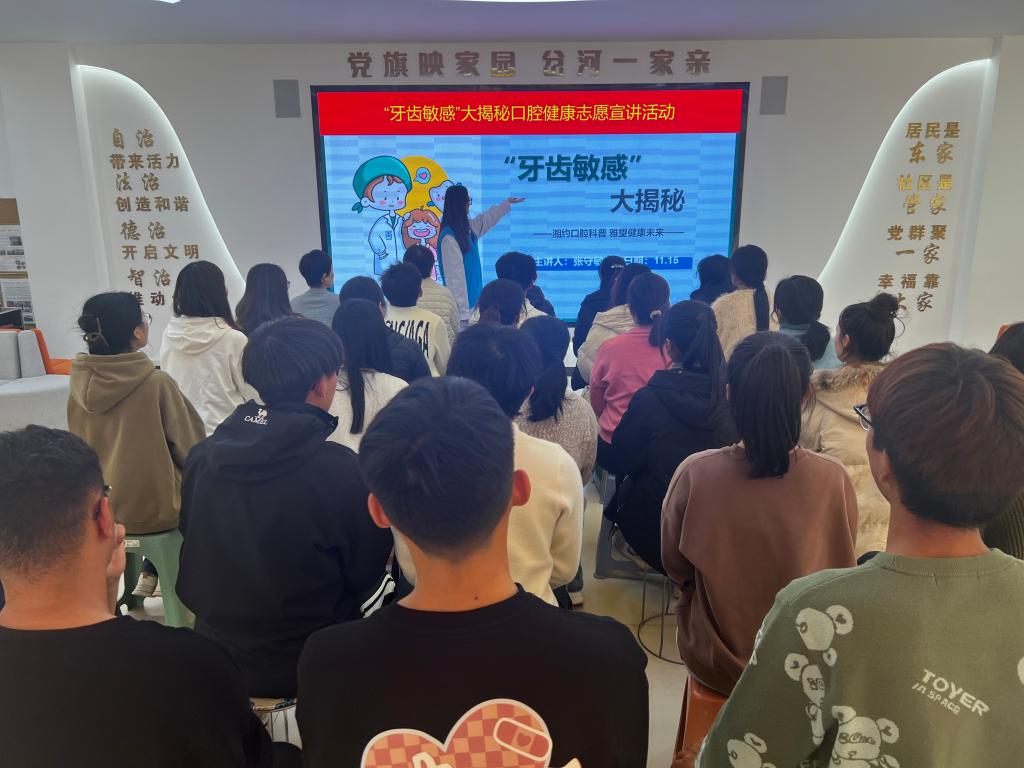 为认真学习领会习近平新时代中国特色社会主义思想,深入贯彻习近平总书记关于青年工作的重要思想,进一步深入推进青年马克思主义者培养工程。医药与护理公司“青马”学员联合南丁格尔志愿服务队和“健康口腔,笑纳阳光”志愿宣讲团于11月14日下午赴岔河社区开展社会实践。