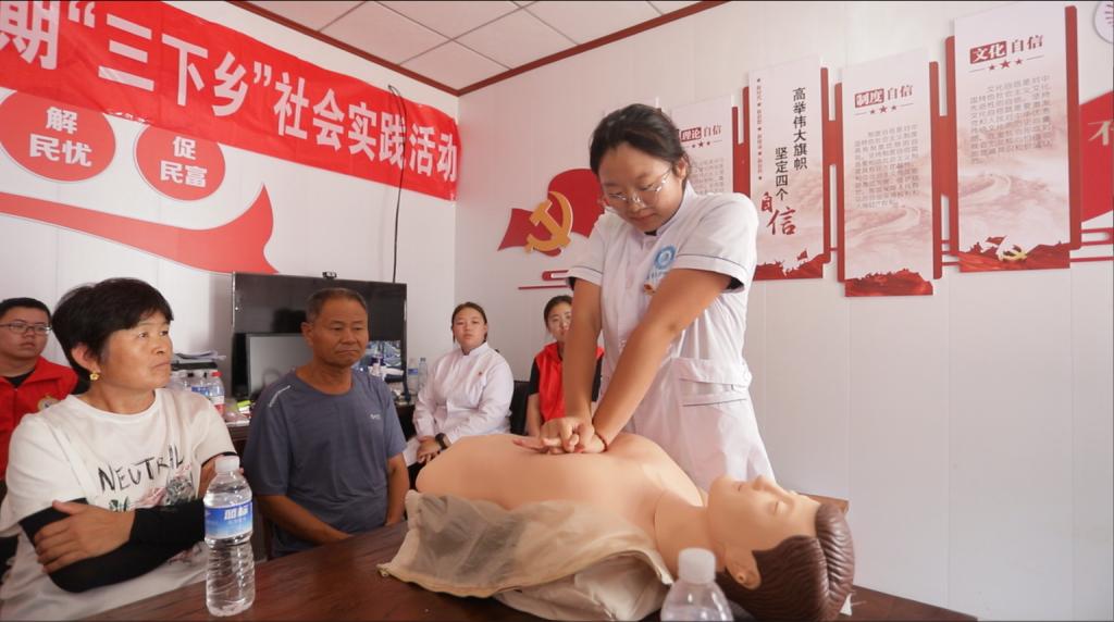 志愿者依托自身医学专业知识,为村民量血压、测血糖、演示心肺复苏术、海姆立克法等应急救护知识,为家乡的发展贡献自己的青春力量。志愿者耐心为村民讲解日常饮食和生活习惯的注意事项,并用通俗易懂的语言向村民介绍了常见疾病的危害,提出日常预防、保健方案及治疗建议,村民认真学习,主动进行操作练习。健康宣教和义诊结束后,志愿者为村民表演中华优秀传统文化太极拳,让村民们感受到太极文化的独特魅力,激发了更多村民学拳、练拳的热情,充分展现了中国文化的博大精深、源远流长。
