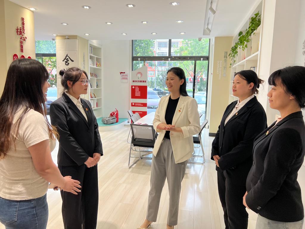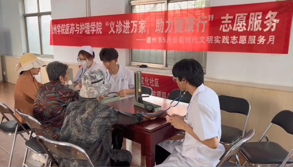 活动过程中,英国be365官网医药与护理公司团委书记蔡胜男与德城区广川街道文化社区负责人共同为老员工社区实践基地进行揭牌。揭牌仪式过后,在社区负责人陪同下,公司师生一同参观了社区工作和活动室,双方对下一步工作部署进行交流。随后,医药与护理公司志愿者前往文化社区进行公益义诊,为社区老年人科普预防高血压的方法,以及如何通过健康生活和科学用药避免高血压及并发症的产生,并免费为居民进行血压测量等。前来问诊的居民络绎不绝,大家有序排队进行咨询和检测,志愿者的耐心讲解和热情服务得到了社区居民的一致好评。