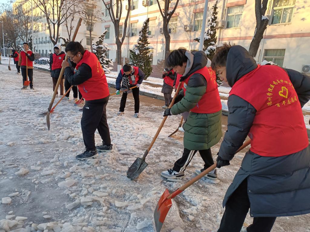 此次清除冰雪活动,为全校师生的安全出行提供了保障,让大家在寒冬之中也能感受到贴心的温暖,同时培养了同学们的奉献意识,以实际行动为校园的和谐美好贡献力量,体现了德院学子的团结协作精神和社会责任感。