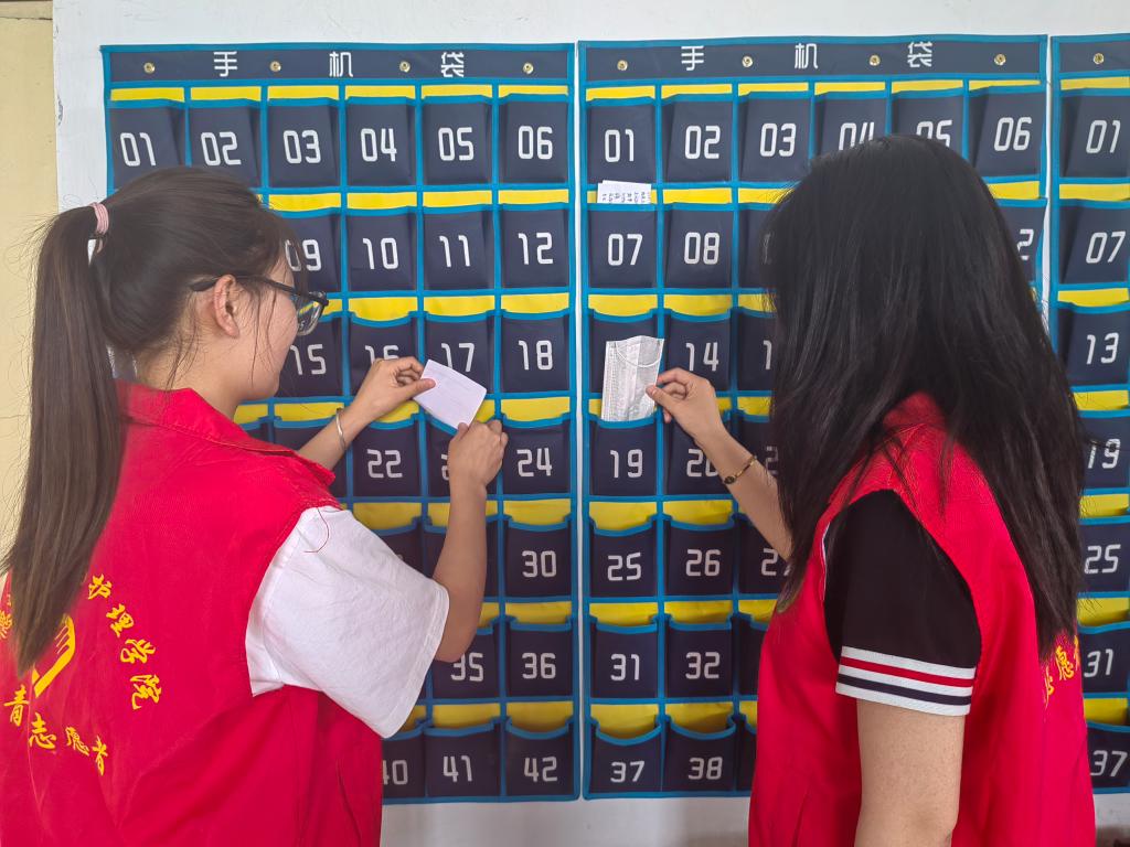 活动中,志愿者对教室的手机袋进行有序打扫,分工明确。将手机袋中存在的垃圾打扫出来,擦出累积的灰尘,避免同学们将手机放入手机袋后造成污染,便于提高同学们的听课效率,沉浸于学习的海洋。