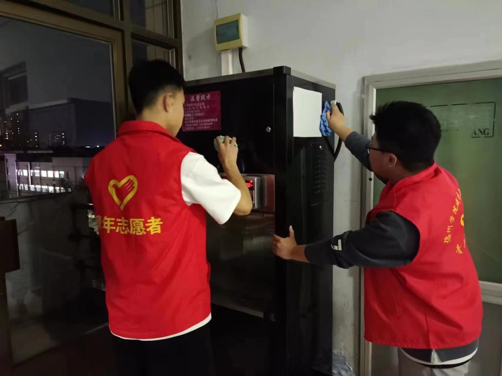在本次活动中,员工党员热情洋溢地对体育楼的饮水机进行清理,为师生提供干净整洁的饮水环境,尽管清扫过程进行的时间不长,但是活动结果令人满意,效果良好。