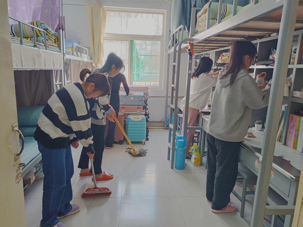 活动过程中,寝室长分配工作,同学们说干就干,热情高涨,撸起袖子便投身到宿舍的清理工作中。寝室卫生大扫除完毕后,各寝室就卫生打扫情况进行了检查并拍照评比,寝室成员各司其职,用自己的双手给了“家”一个更加体面的模样,添上一份别样的温暖。